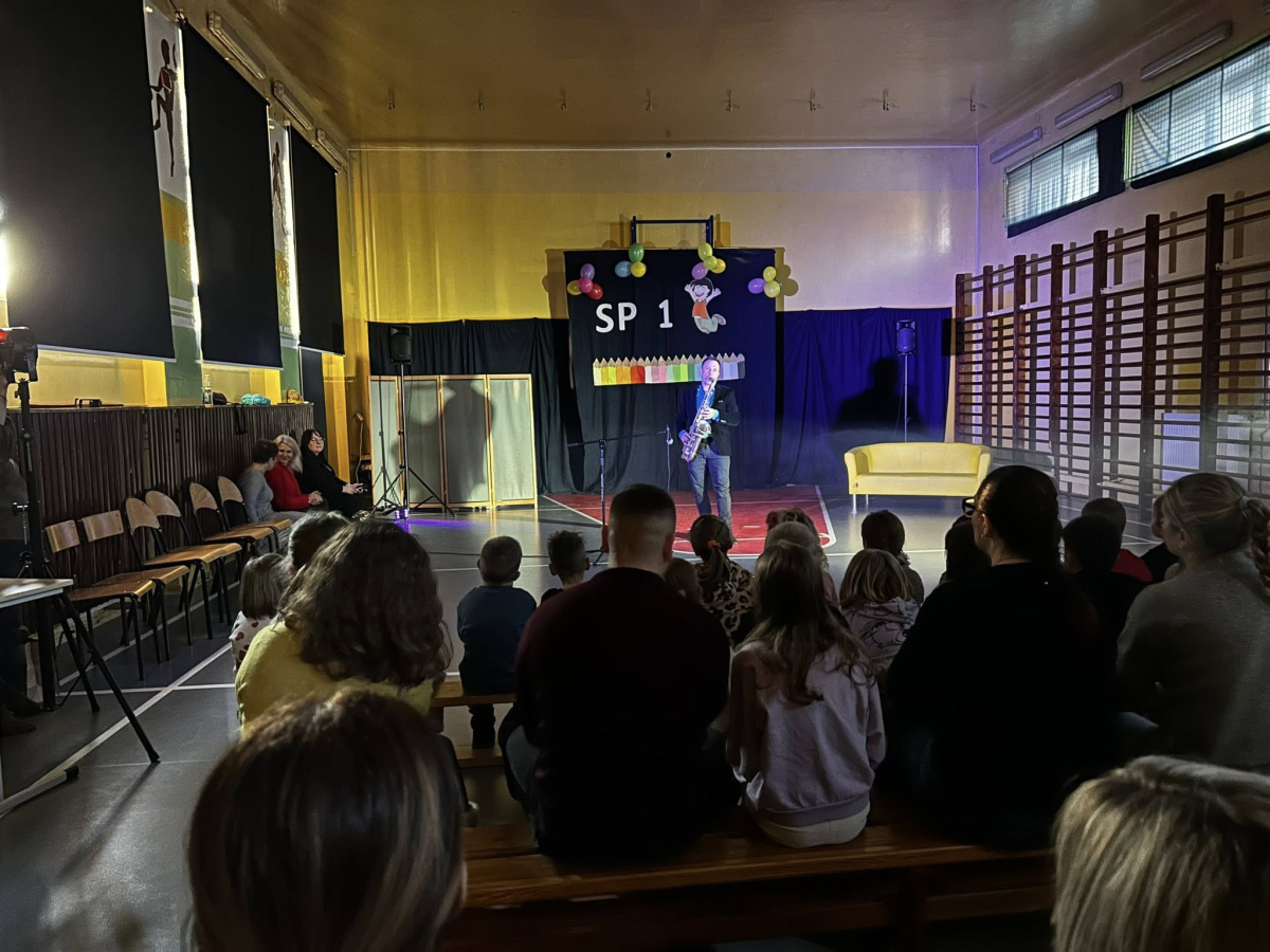 Uroczystość rozpoczęła się w pięknym, muzycznym stylu – nasz pan od muzyki zachwycił wszystkich grą na saksofonie, wprowadzając zgromadzonych w niezwykły, artystyczny nastrój.