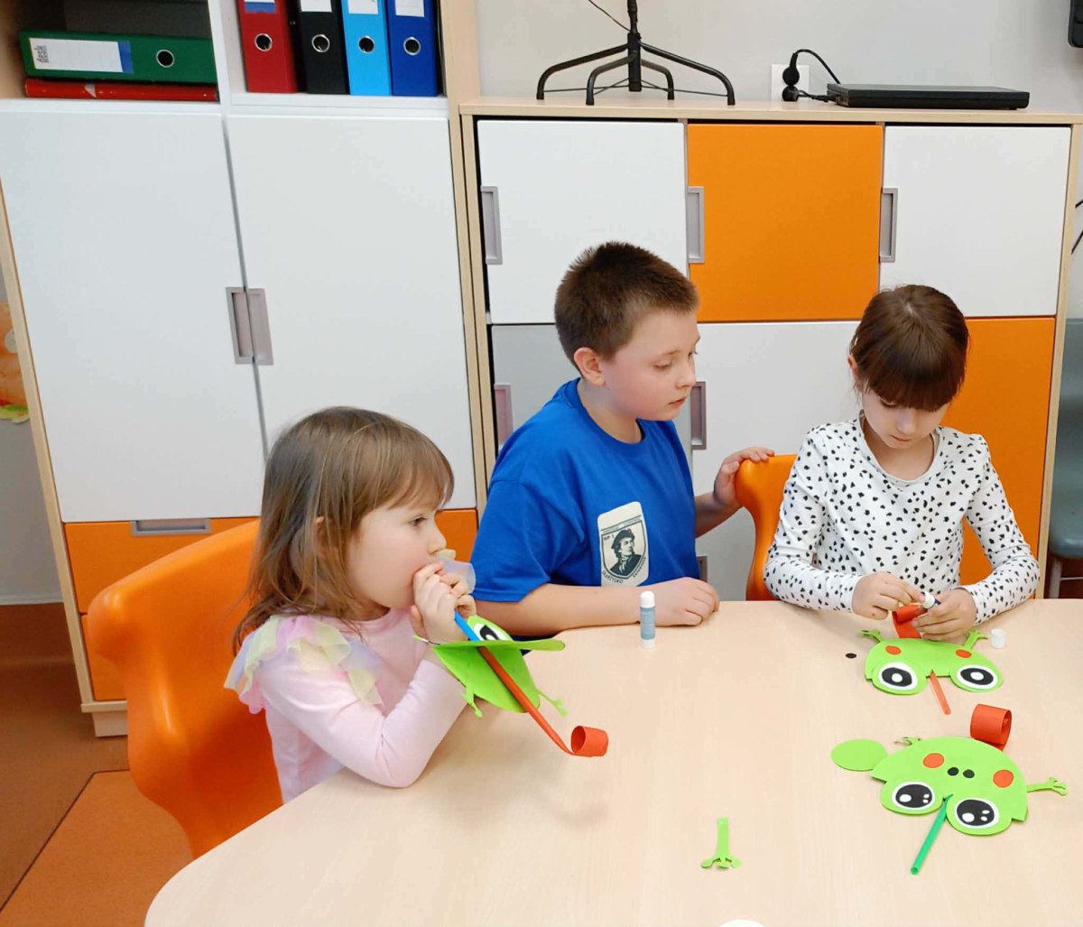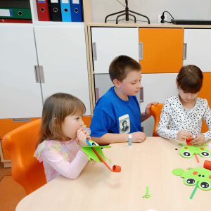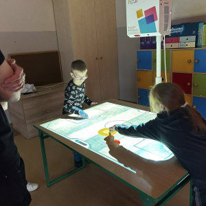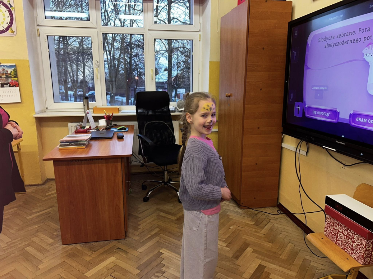 Po części artystycznej przyszedł czas na zwiedzanie szkoły. W każdej sali na przedszkolaków czekały ciekawe atrakcje, kreatywne zadania i niespodzianki. Dzieci mogły poczuć się jak prawdziwi uczniowie – odkrywać, doświadczać i świetnie się przy tym bawić.