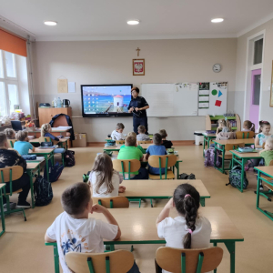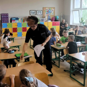 W dniach 17.09 i 19.09 w naszej szkole odbyły się spotkania informacyjno-edukacyjne pod hasłem ,,Bezpieczna droga do szkoły". Ich celem było przypomnienie zasad bezpiecznego poruszania się po drogach oraz podkreślenie ważności elementów odblaskowych. Uczestnikami byli uczniowie z klas I-III. Serdeczne podziękowania składamy dla prowadzącej zajęcia mł. asp. Agnieszki Boszczyk- Górlickiej z KPP w Skarżysku-Kamiennej.