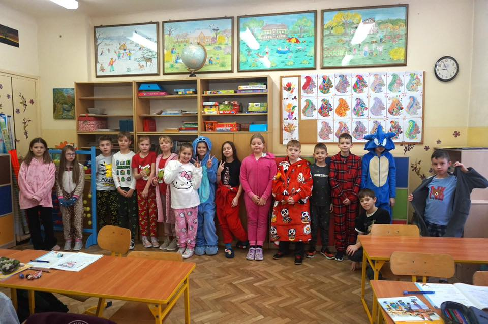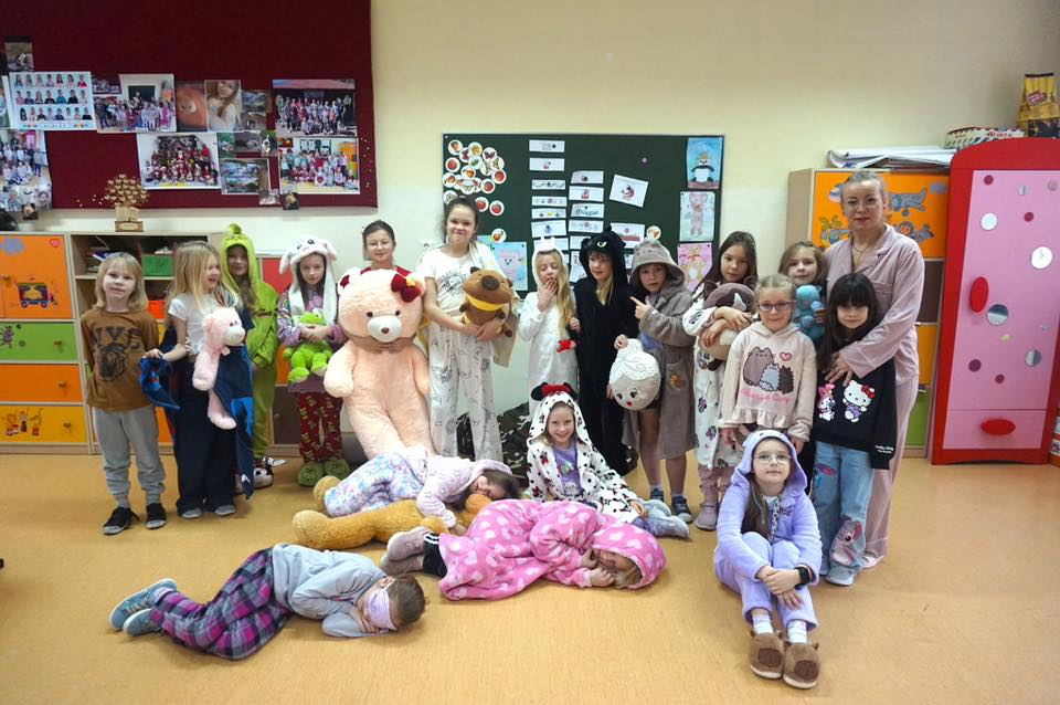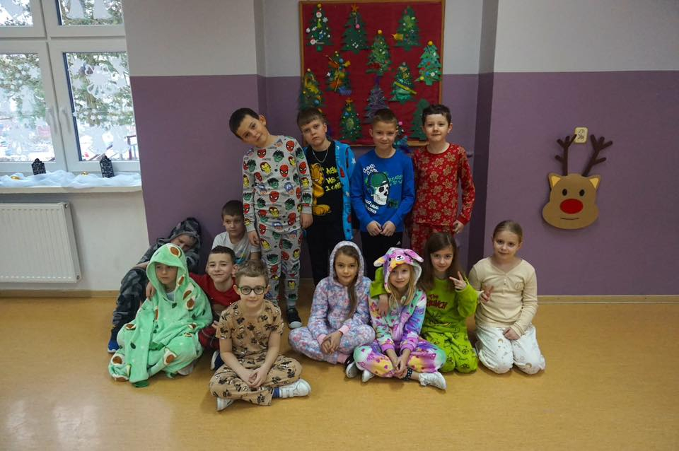 W piątek korytarze naszej szkoły wyglądały zupełnie inaczej niż zwykle ponieważ Samorząd Szkolny tego zorganizował Dzień Piżamy. Zamiast codziennych ubrań wszędzie można było zobaczyć kolorowe piżamy, cieplutkie kapcie, szlafroki , poduszki i kocyki. Nie zabrakło dobrej zabawy i chwili relaksu. Dziękujemy!