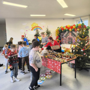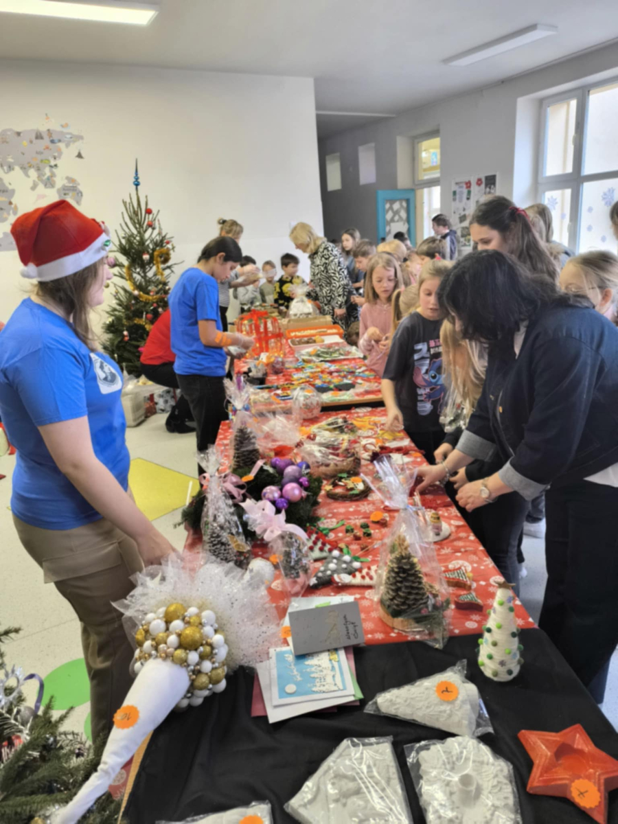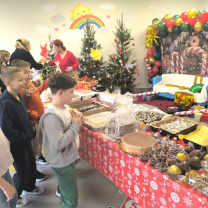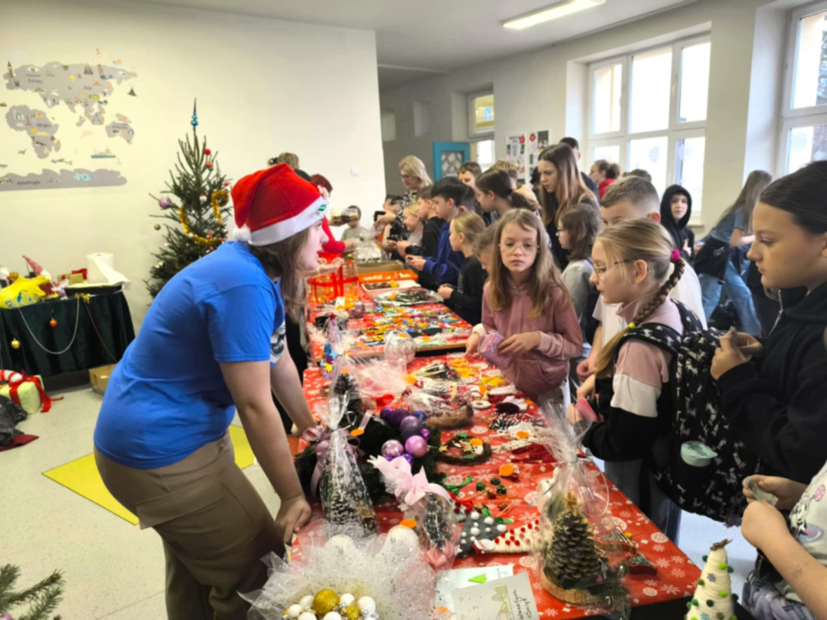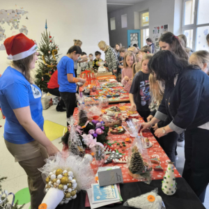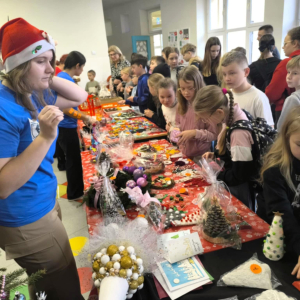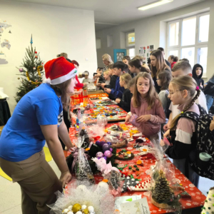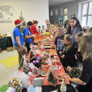 16 grudnia w naszej szkole odbył się Kiermasz Bożonarodzeniowy przygotowany przez Samorząd Szkolny, Radę Rodziców oraz uczniów. Sprawił on wszystkim wiele radości. Wystawiono atrakcyjne dekoracje świąteczne – własnoręcznie wykonane stroiki, bombki, gwiazdki, skarpety, breloczki itp. Na stołach królowały ciasta, babeczki, domowe przetwory. To wydarzenie pokazało, jak wiele radości może przynieść wspólne działanie i dzielenie się świątecznym duchem. Dziękujemy wszystkim za zaangażowanie i pomoc w przygotowaniu tego przedsięwzięcia. Wesołych Świąt!!!