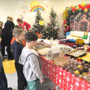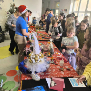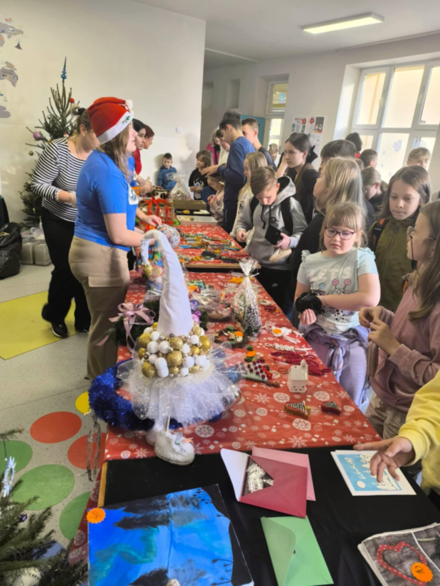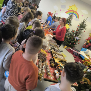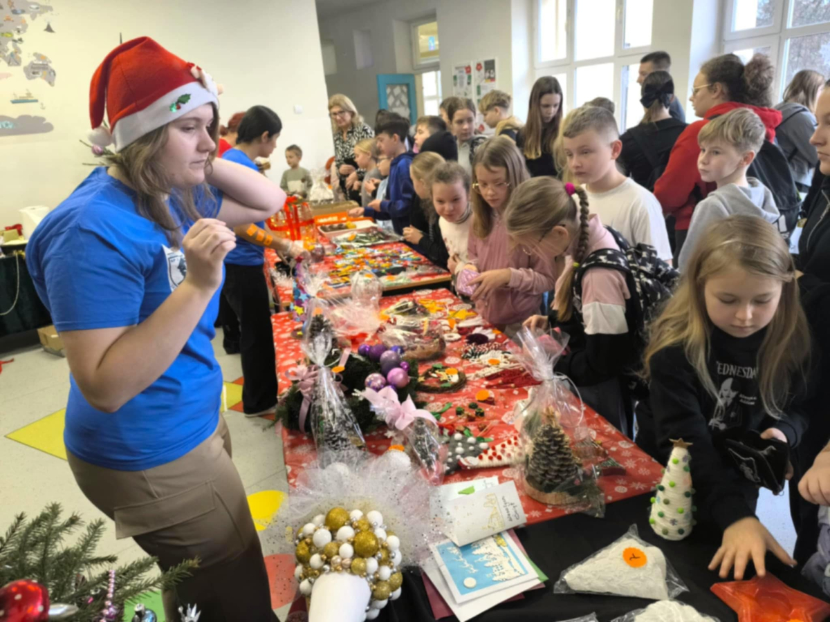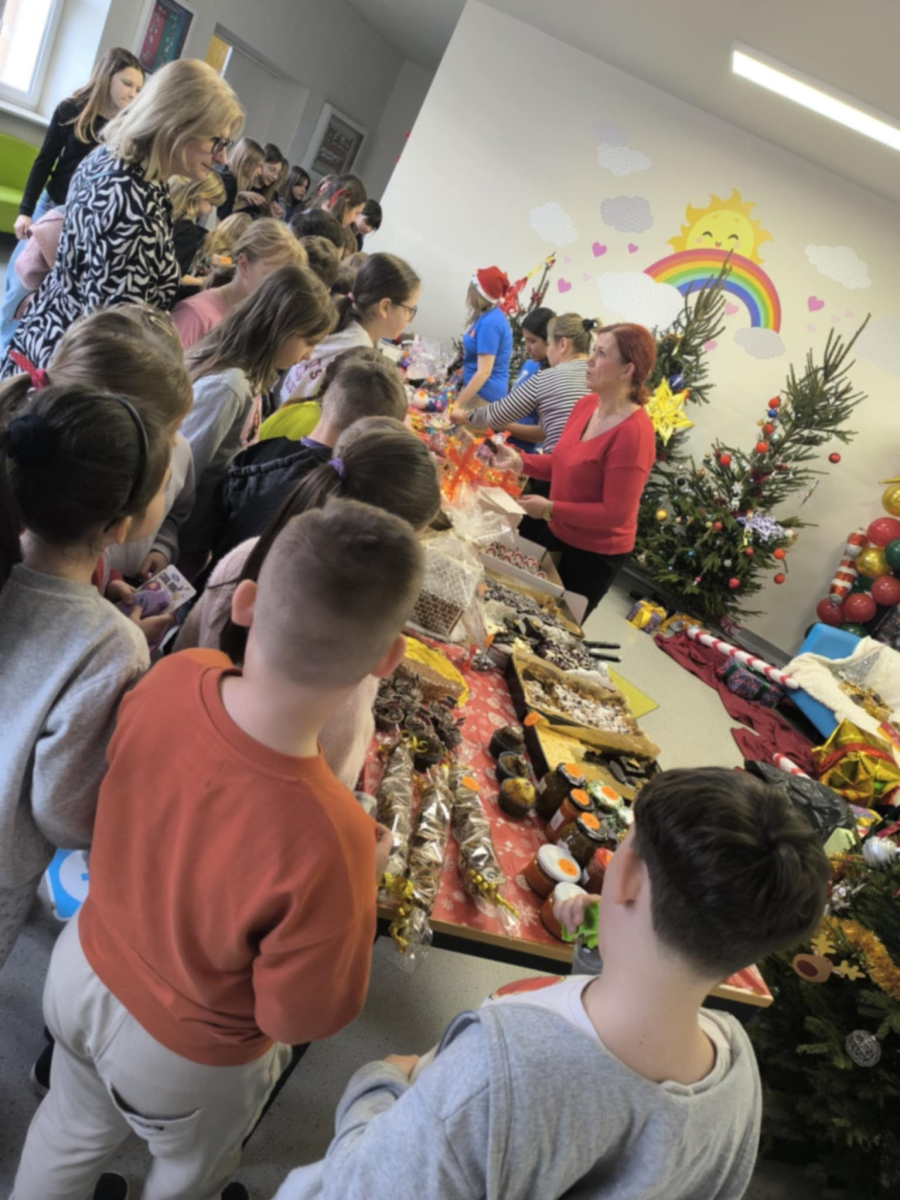 16 grudnia w naszej szkole odbył się Kiermasz Bożonarodzeniowy przygotowany przez Samorząd Szkolny, Radę Rodziców oraz uczniów. Sprawił on wszystkim wiele radości. Wystawiono atrakcyjne dekoracje świąteczne – własnoręcznie wykonane stroiki, bombki, gwiazdki, skarpety, breloczki itp. Na stołach królowały ciasta, babeczki, domowe przetwory. To wydarzenie pokazało, jak wiele radości może przynieść wspólne działanie i dzielenie się świątecznym duchem. Dziękujemy wszystkim za zaangażowanie i pomoc w przygotowaniu tego przedsięwzięcia. Wesołych Świąt!!!