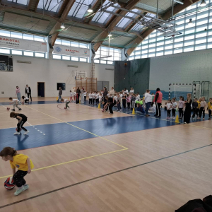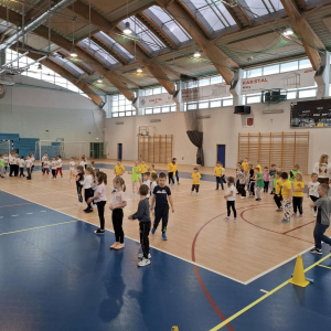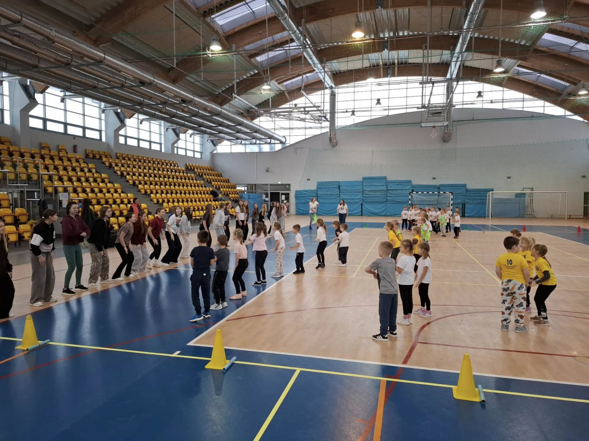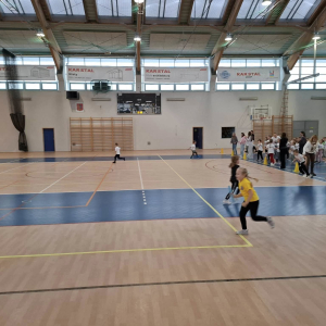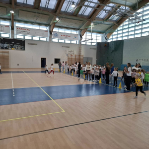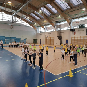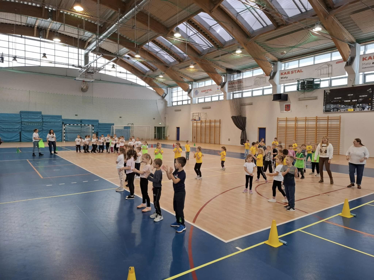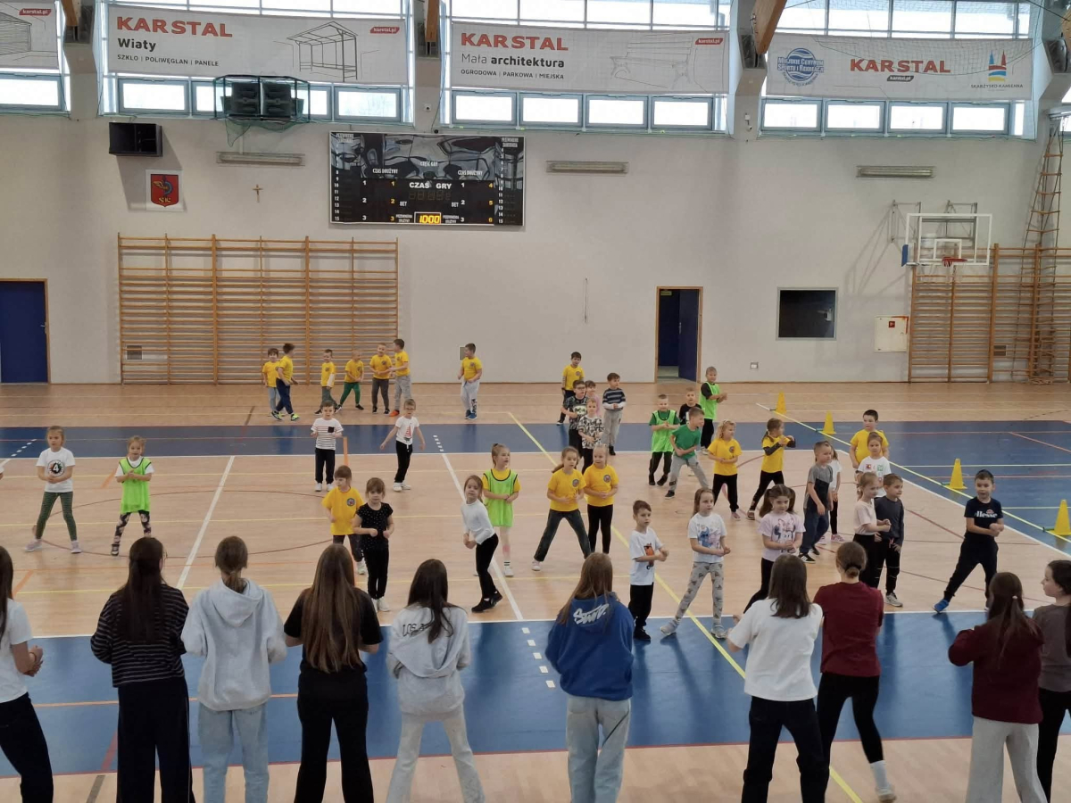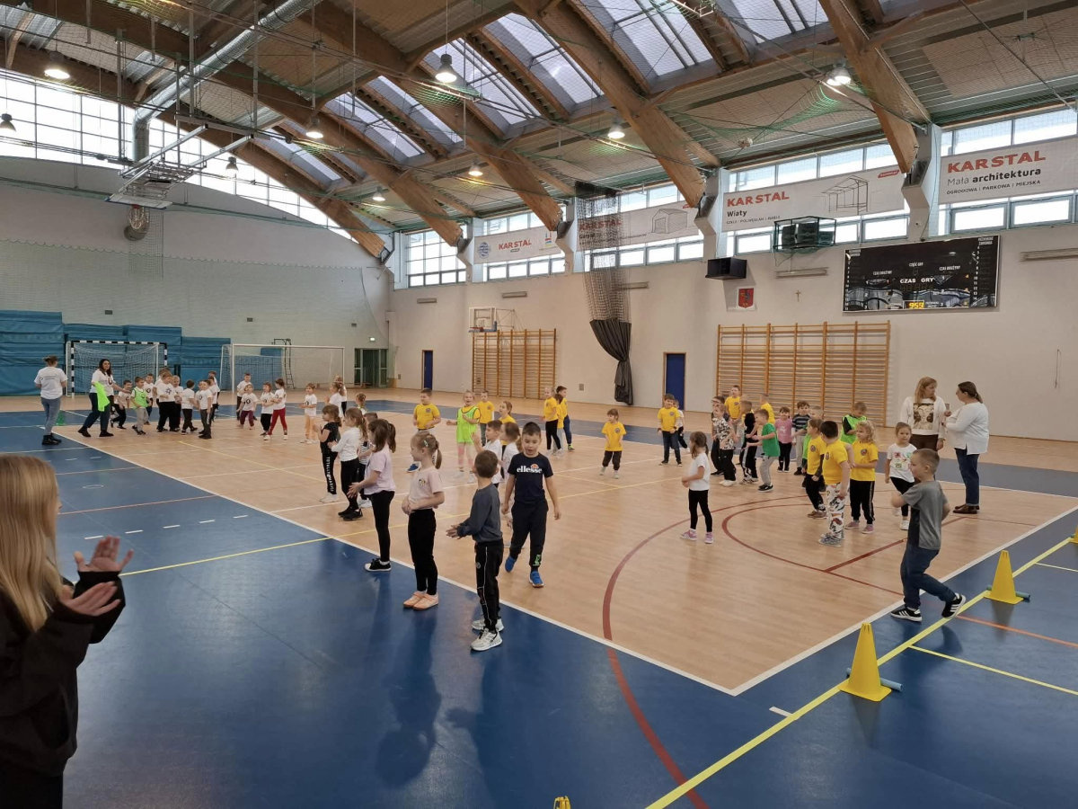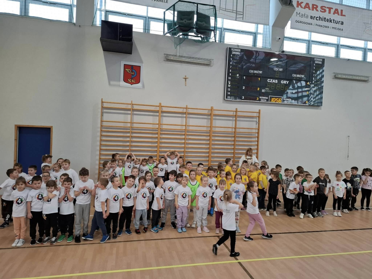 W dniu 08.01.2026r. nasza szkoła zorganizowała Zimowy Turniej Gier i Zabaw dla przedszkolaków. W imprezie wzięły udział dzieci z Przedszkola nr 4 oraz Przedszkola nr 10. Przedszkolaki rywalizowały ze sobą w 6 konkurencjach sportowych wymagających od nich dużej sprawności fizycznej. Po zakończeniu turnieju dzieci otrzymały słodki poczęstunek. Przed rozpoczęciem rywalizacji uczennice z klas 7a, 7b i 7c pod opieką Pani Iwony Kotarskiej przeprowadziły rozgrzewkę w formie ogólnorozwojowej oraz tanecznej. Wielkie podziękowania dla wspaniałych młodych sportowców oraz dla Pań opiekunek grup przedszkolnych. Dodatkowe podziękowania dla Pani Magdaleny Kalbarczyk, Dyrektora Szkoły Podstawowej nr 1, Rady Rodziców SP nr 1 oraz Pań nauczycielek opiekującymi się Samorządem Uczniowskim za ufundowanie słodkiego upominku. Za sprawne przeprowadzenie zawodów odpowiedzialni byli Pani Iwona Kotarska oraz Pan Piotr Nowak.