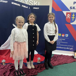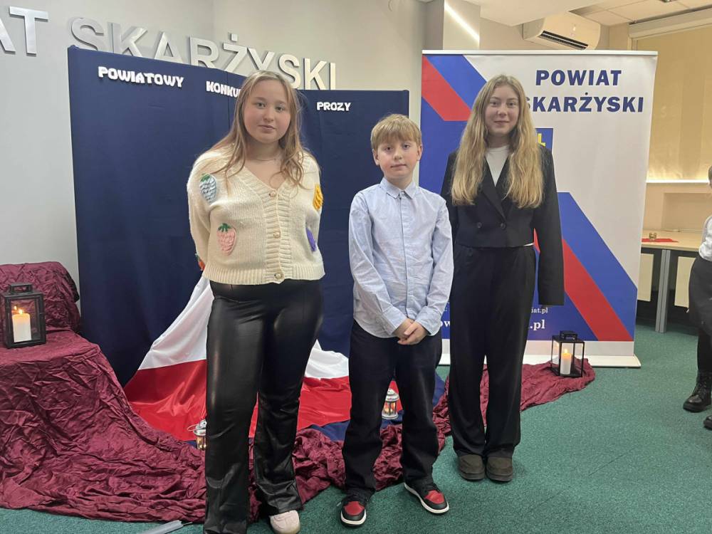 Uczniowie naszej szkoły: Gustaw Medyński, Blanka Bogucka, Lena Skwirowska z klasy 6 oraz Lena Kamińska, Aleksandra Miernik i Julia Winiarska z klasy 2 wzięli udział w XI Powiatowym Konkursie Recytatorskim Poezji i Prozy „Być zwyciężonym i nie ulec – to zwycięstwo”.