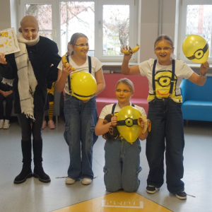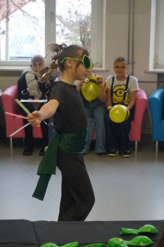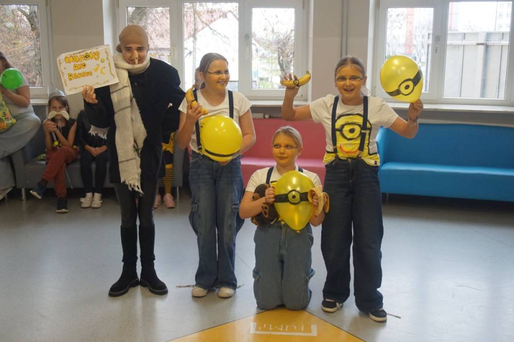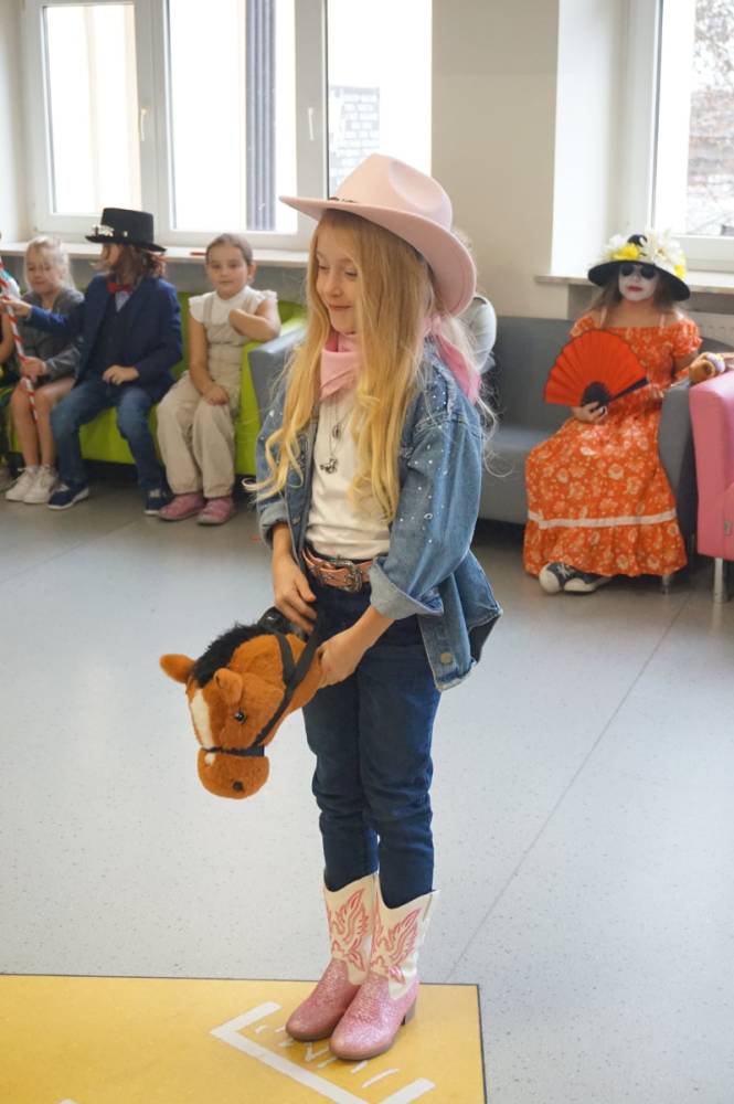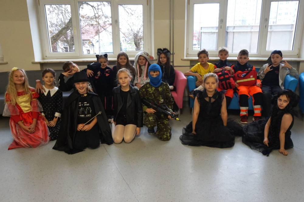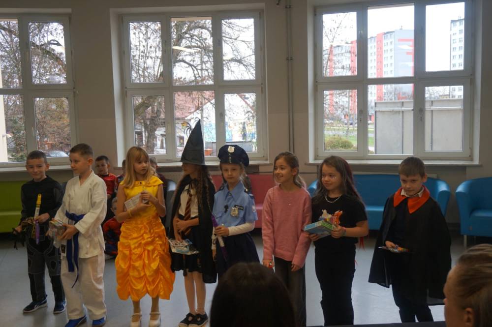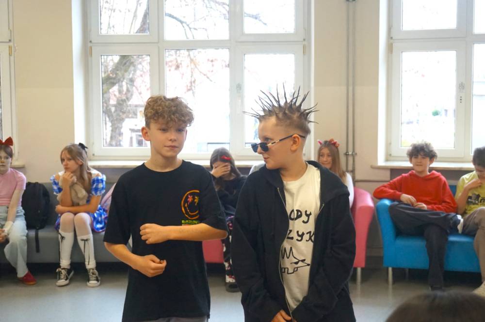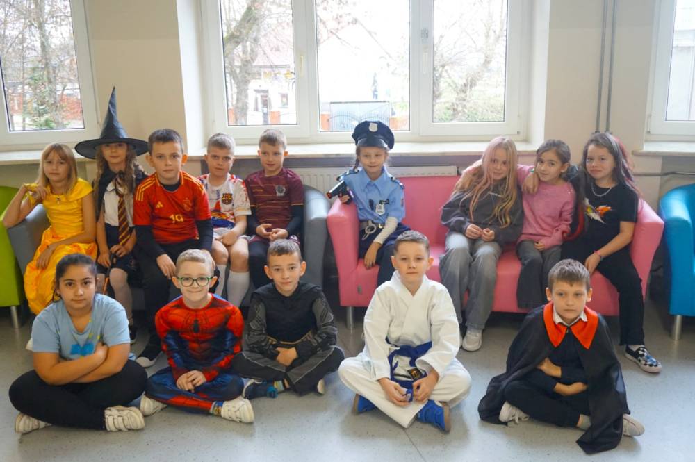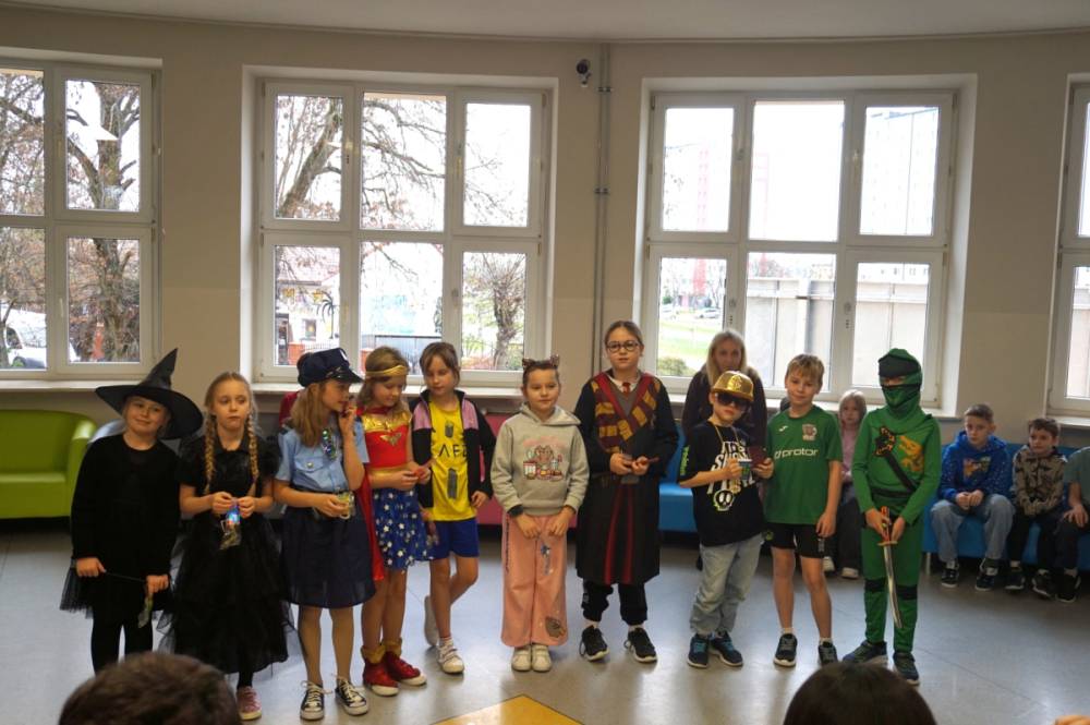 21 listopada 2025r. w naszej szkole obchodziliśmy wyjątkowy dzień - uczniowie oraz nauczyciele występowali w rolach bohaterów z bajek, filmów, sportu, muzyki oraz historii. Klasy 1-8 prezentowały swoje przebrania, a komisja konkursowa nagrodziła wyróżnione kreacje nagrodami rzeczowymi. Długa przerwa rozbrzmiewała muzyką, a na korytarzach zagościł taniec! Okazało się, że listopad również może być pełen uśmiechu i radości. Nad wszystkim czuwał Samorząd Szkolny wraz z opiekunami. Dziękujemy!