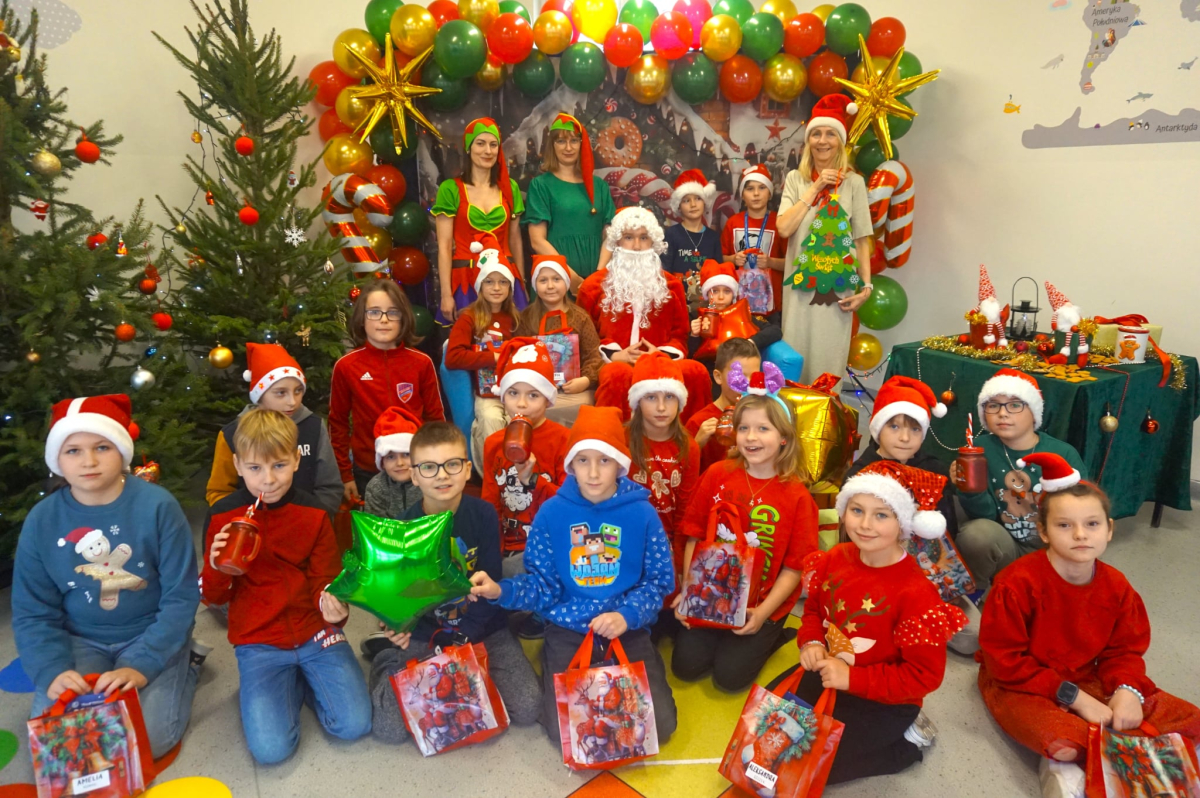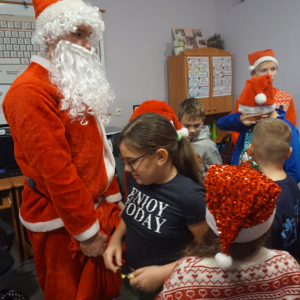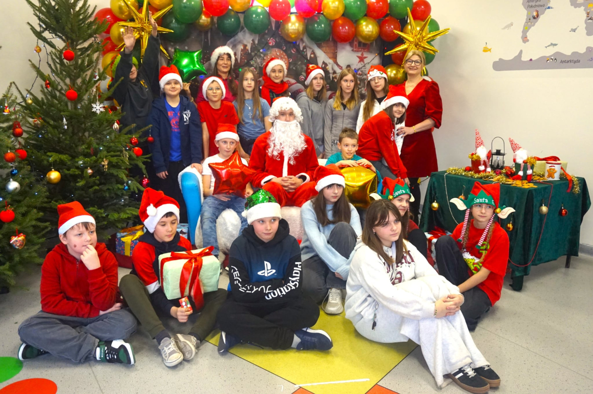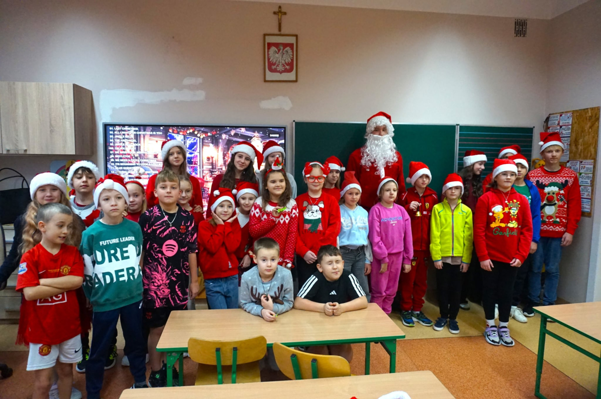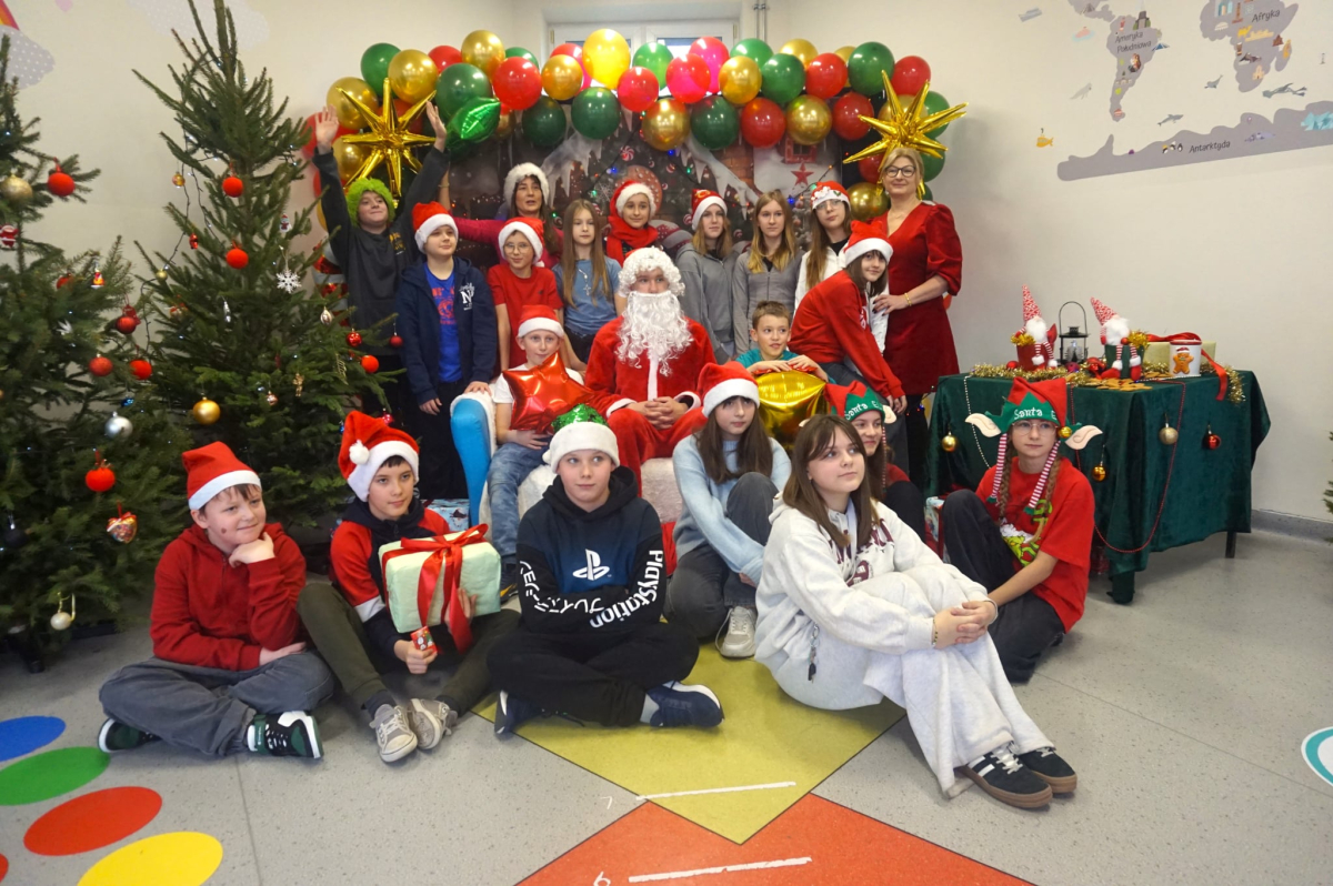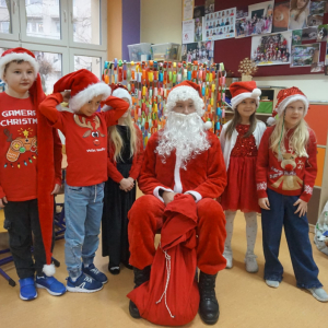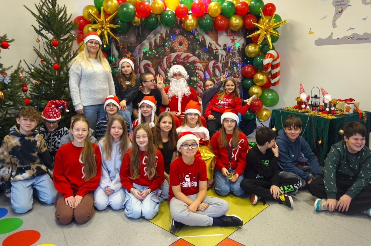 Piątek 05 grudnia 2025r. był w naszej szkole wyjątkowo magiczny, ponieważ już od rana można było spotkać w korytarzach Świętego Mikołaja! Wizyta tego szczególnego gościa wywołała mnóstwo uśmiechów na twarzach uczniów i nauczycieli. Samorząd Uczniowski zadbał o to, aby nikt nie przegapił tej wyjątkowej okazji. Uczniowie odwiedzili wszystkie klasy, zapraszając do wspólnych fotografii z Mikołajem i dbając o to, aby każdy miał szansę poczuć magię zbliżających się świąt. Na tle przepięknej dekoracji powstały radosne i pełne świątecznego klimatu zdjęcia, które z pewnością będą niezapomnianą pamiątką na długie lata. A to jeszcze nie wszystko! Mikołaj miał ze sobą pełen worek słodkości i chętnie obdarowywał nimi uczniów, dzięki czemu w całej szkole czuć było jeszcze więcej ciepła. Takie chwile sprawiają, że przedświąteczny czas staje się naprawdę wyjątkowy.