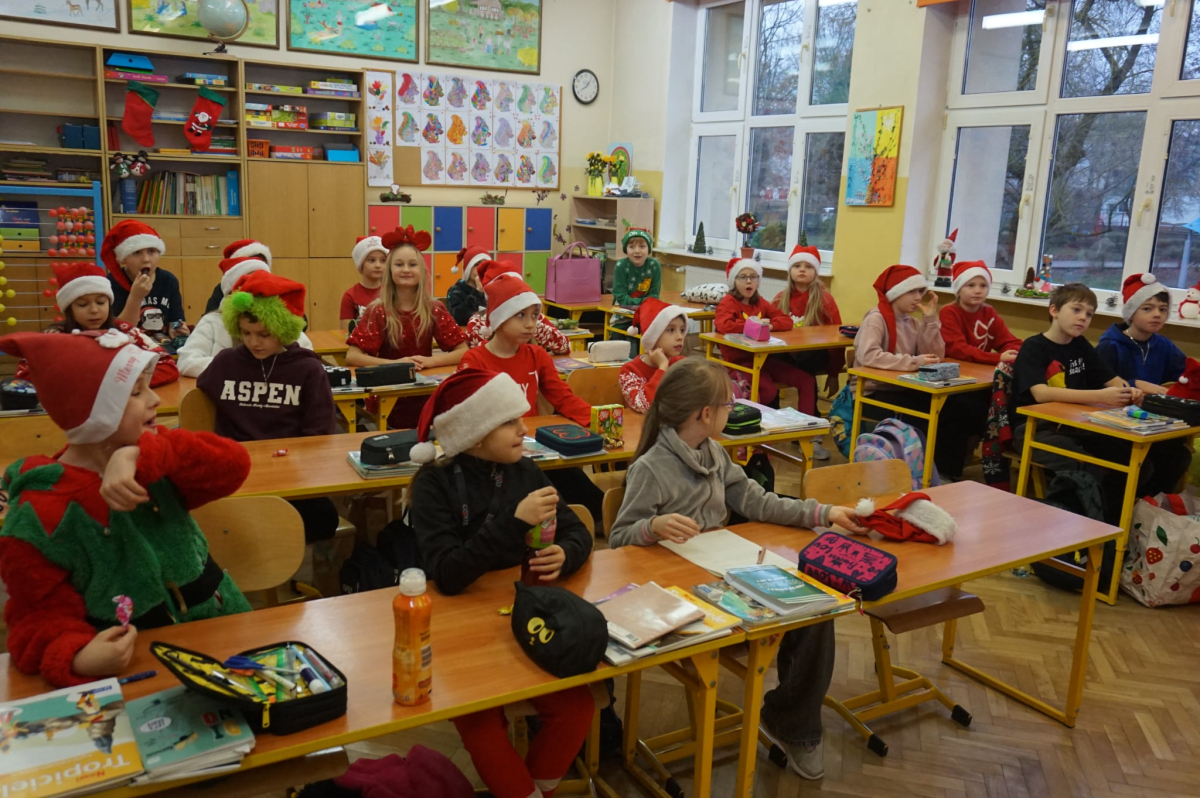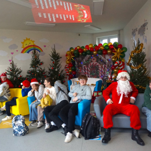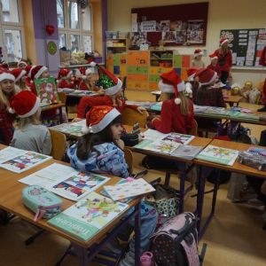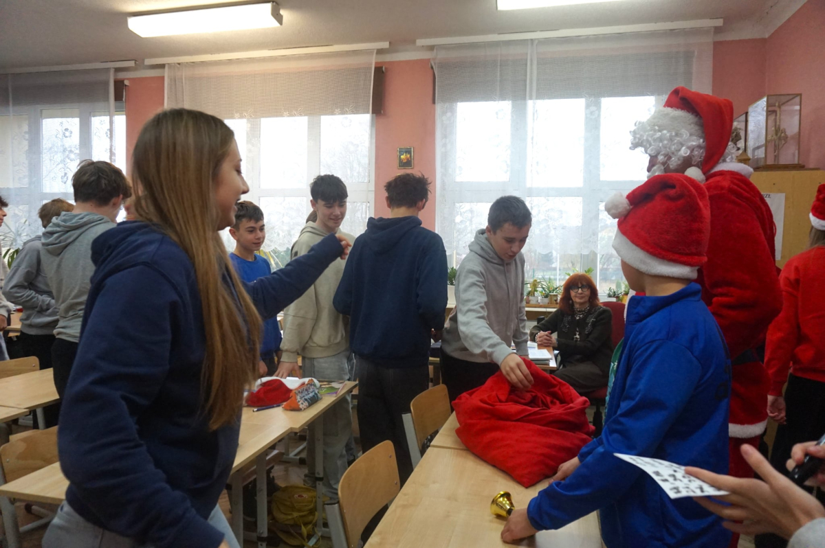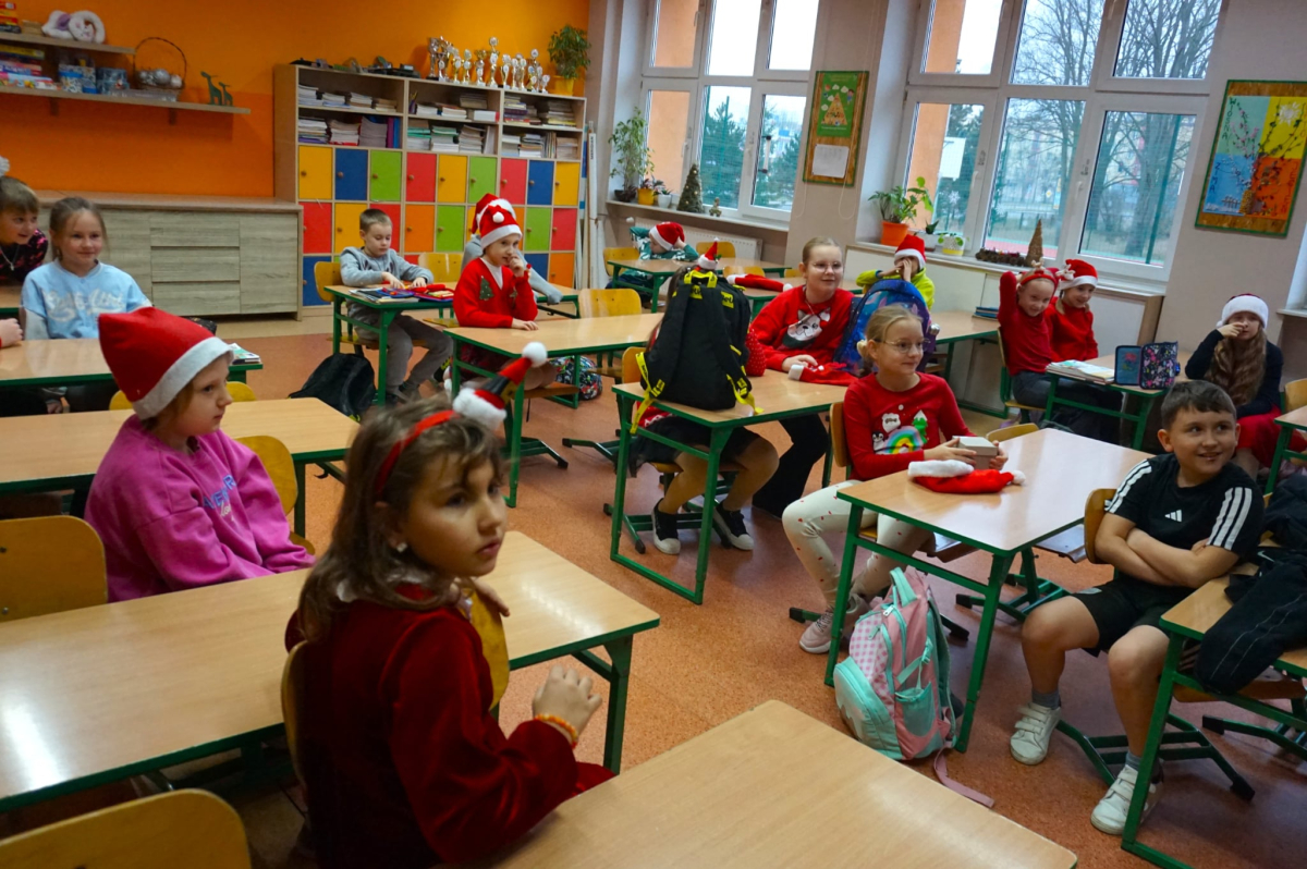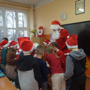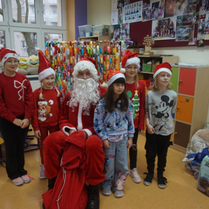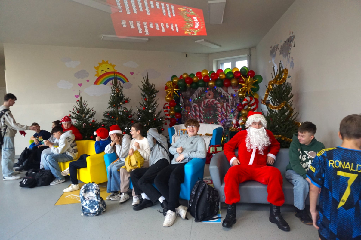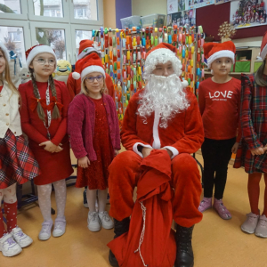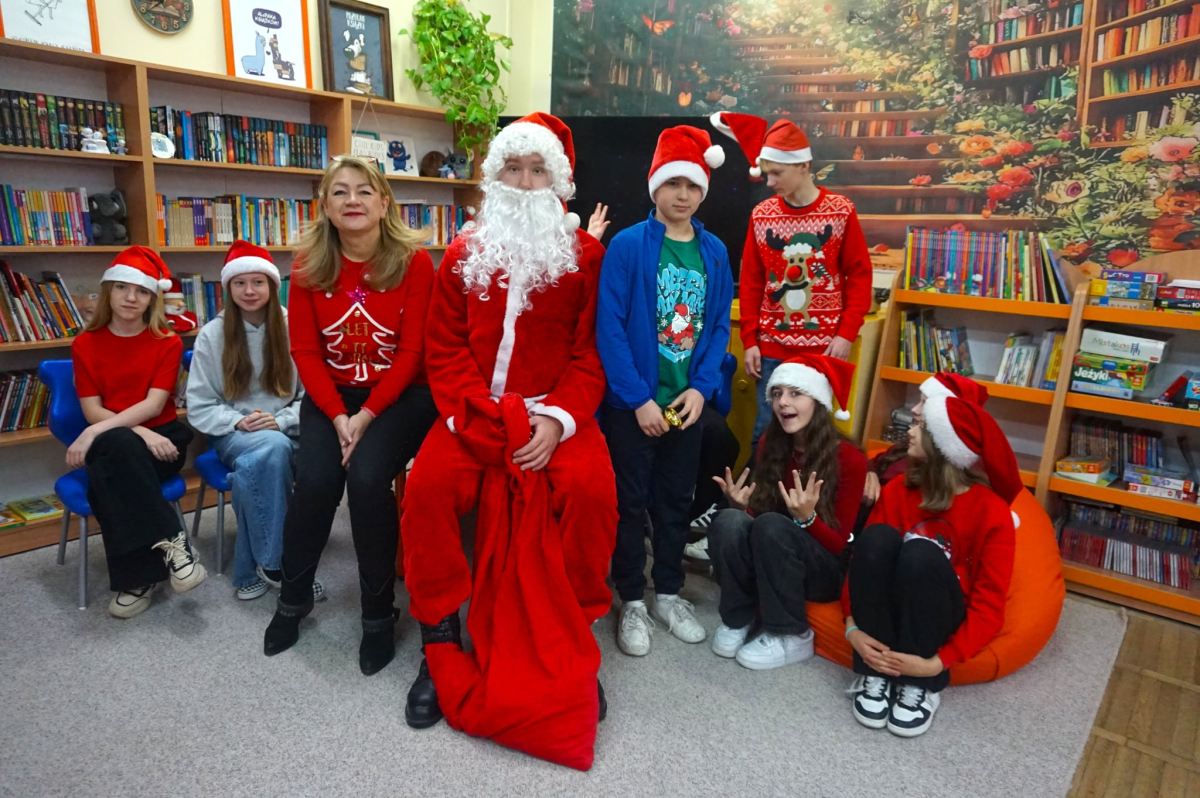 Piątek 05 grudnia 2025r. był w naszej szkole wyjątkowo magiczny, ponieważ już od rana można było spotkać w korytarzach Świętego Mikołaja! Wizyta tego szczególnego gościa wywołała mnóstwo uśmiechów na twarzach uczniów i nauczycieli. Samorząd Uczniowski zadbał o to, aby nikt nie przegapił tej wyjątkowej okazji. Uczniowie odwiedzili wszystkie klasy, zapraszając do wspólnych fotografii z Mikołajem i dbając o to, aby każdy miał szansę poczuć magię zbliżających się świąt. Na tle przepięknej dekoracji powstały radosne i pełne świątecznego klimatu zdjęcia, które z pewnością będą niezapomnianą pamiątką na długie lata. A to jeszcze nie wszystko! Mikołaj miał ze sobą pełen worek słodkości i chętnie obdarowywał nimi uczniów, dzięki czemu w całej szkole czuć było jeszcze więcej ciepła. Takie chwile sprawiają, że przedświąteczny czas staje się naprawdę wyjątkowy.