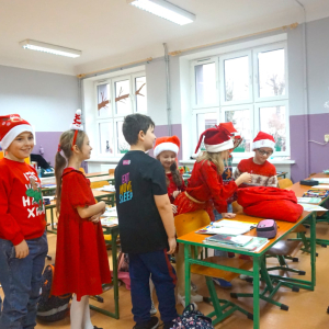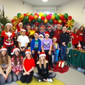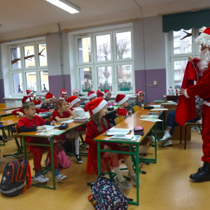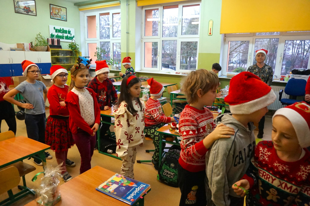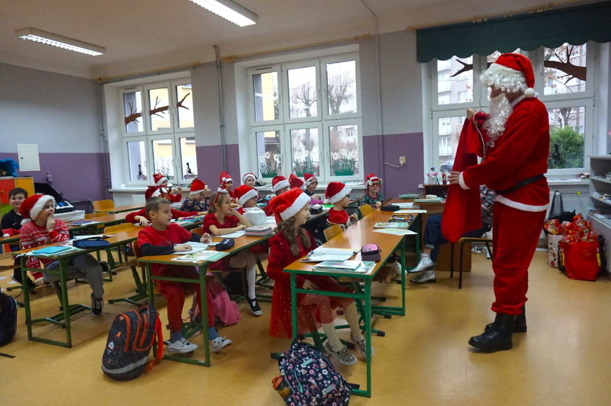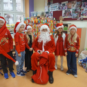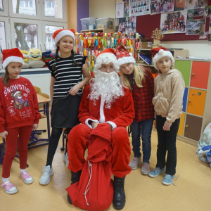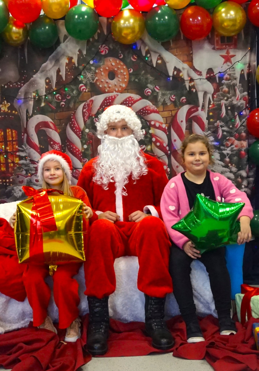 Dziękujemy za ten niezwykły dzień! Szczególne podziękowania dla absolwenta SP1 Piotra Wójcika za wcielenie się w rolę Świętego Mikołaja.