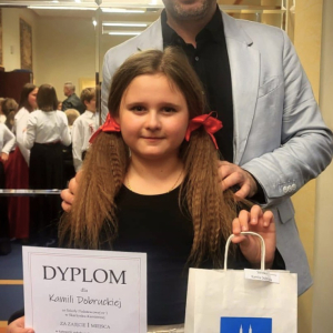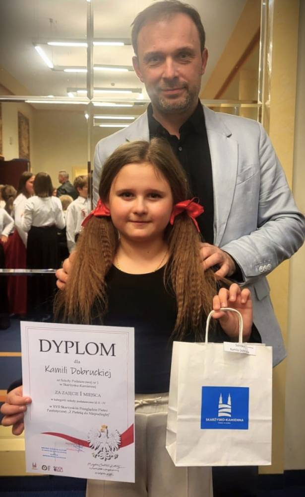 19 listopada 2025 r. w Miejskim Centrum Kultury odbył się finał XVII Skarżyskiego Przeglądu Pieśni Patriotycznej „Z Pieśnią do Niepodległej”. Naszą szkołę reprezentowała uczennica klasy 4a Kamila Dobrucka zdobywając I miejsce! Kamila wykonała piosenkę „Wolność”, której kompozytorem jest Piotr Rubik. Do konkursu uczennicę przygotował pan Mariusz Kaczmarczyk, który akompaniował jej na fortepianie. Gratulacje!