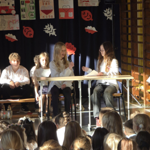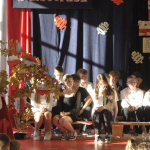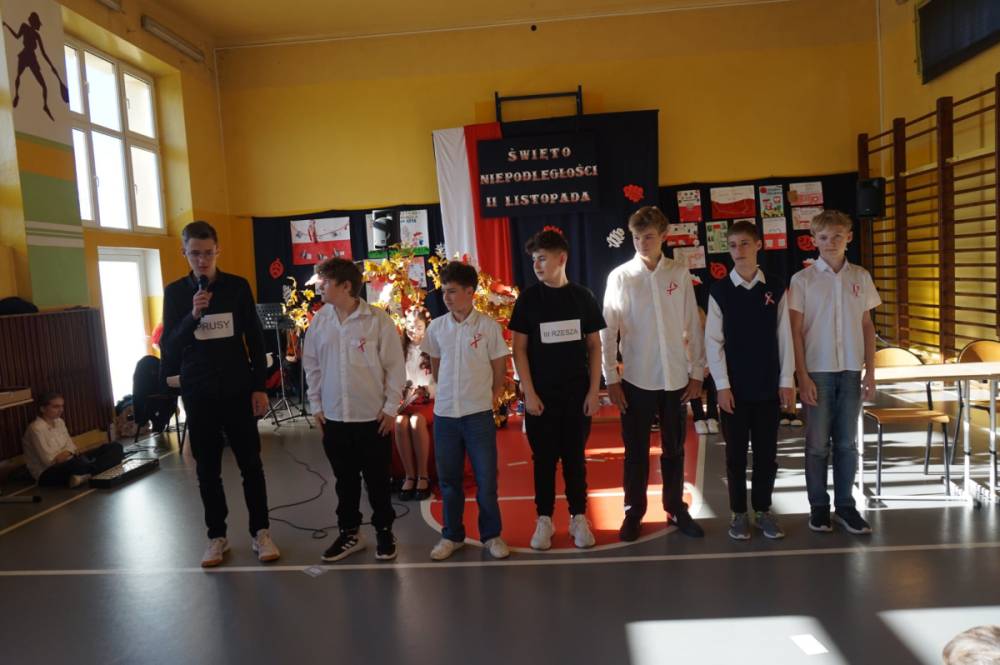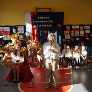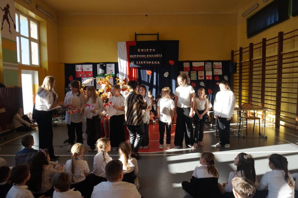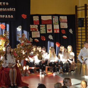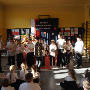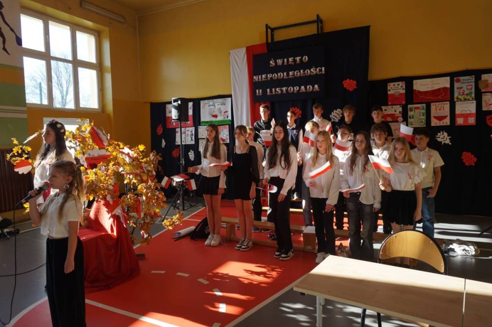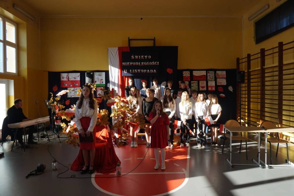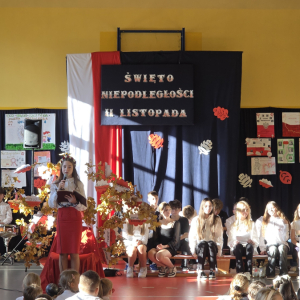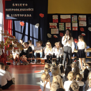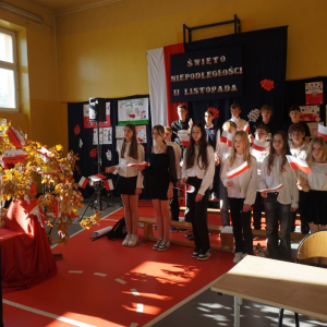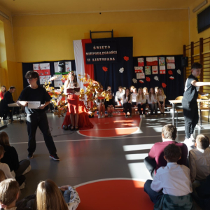 A. Kamińskiego. O godzinie 11.11 zebrana publiczność wraz z występującymi artystami odśpiewała hymn państwowy, włączając się w akcję „Szkoła do hymnu”. O oprawę muzyczną zadbał p. M. Kaczmarczyk wraz z grupą uczniów. Dekorację wykonała p. E. Tarka.